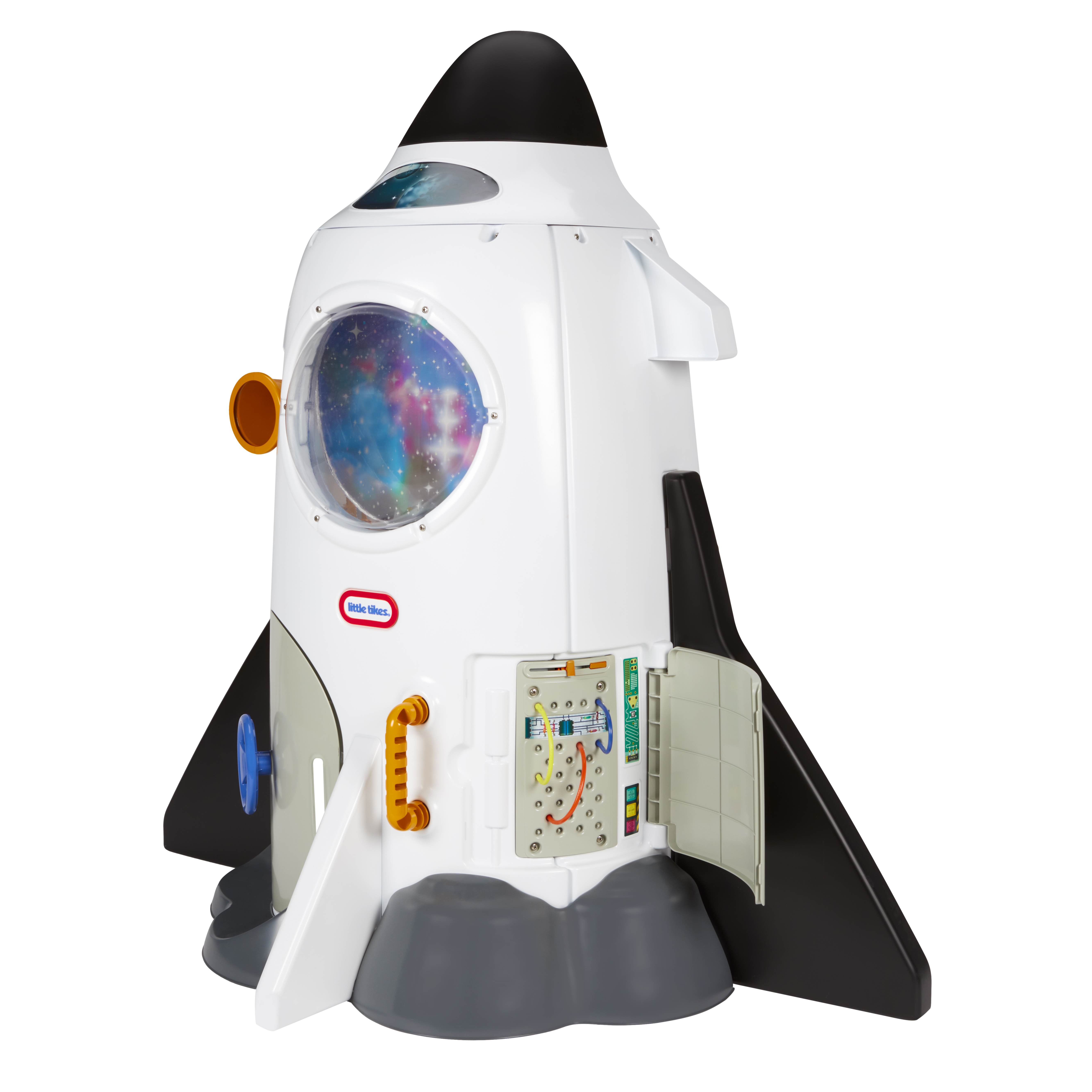 Avec ses 1,25m de haut, la fusée Adventure Rocket de Little Tikes touche presque les étoiles! Dotée d'un centre de contrôle, d'accessoires et de sons et lumières réalistes, les enfants vont pouvoir imiter les vrais astronautes! Nécessite 3 piles AA non incluses. Dès 2 ans.