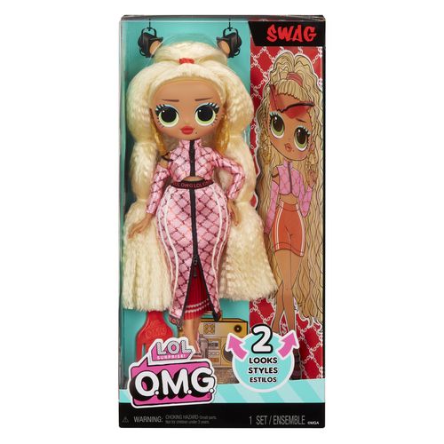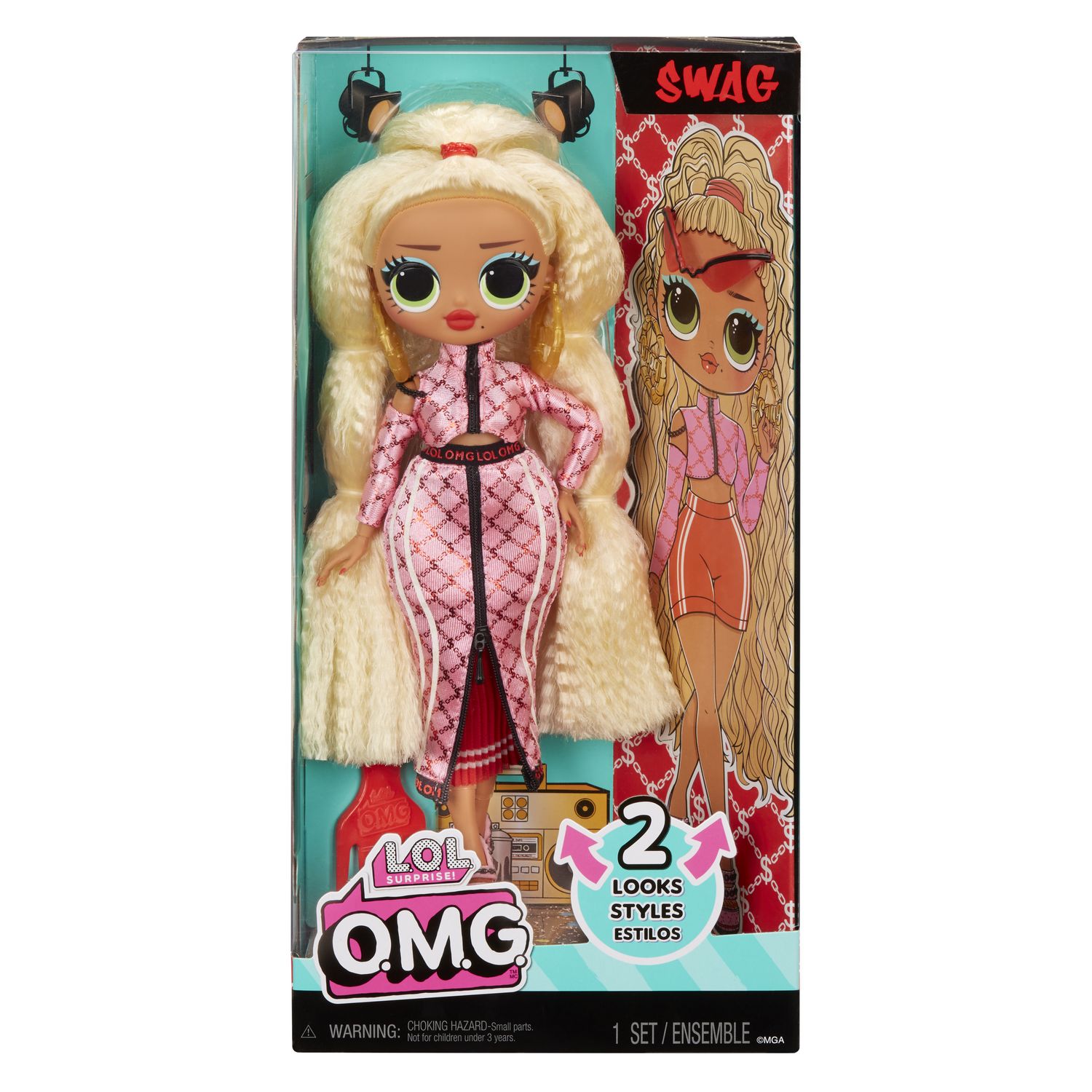 Les poupées mannequins L.O.L. Surprise O.M.G sont de retour avec de nouvelles tenues glamour et de superbes coiffures. Habillez Swag avec son haut rose zippé a manches a motifs assortis et sa magnifique jupe longue. Déballez plein de surprises, dont des tenues transformables et des accessoires fabuleux, pour mettre en valeur son style royalement glam ! Collectionnez les 4 poupées L.O.L.