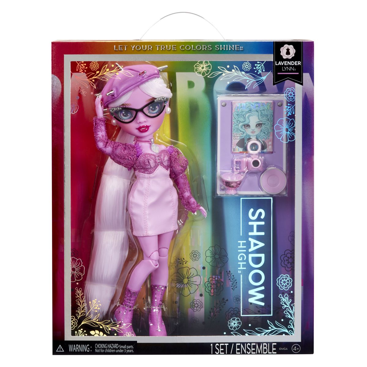 "LAISSEZ BRILLER VOS VRAIES COULEURS : Cette collection de poupées colorées comprend 5 filles et 1 garçon aux couleurs classiques de l'arc-en-ciel, mais dans les tons atténués de Shadow High. Chaque poupée possède son style et ses accessoires personnels MAUVE RAFFINÉ : Lavender exprime son style dans une robe avec des détails en dentelle, des boucles d'oreilles et un béret. Elle a des lunettes discrètes, de vrais cils et des yeux en verre. Ses cheveux extra-longs sont ramenés en queue de cheval LES ACCESSOIRES INSPIRENT LA CRÉATIVITÉ : À Shadow High, tous les élèves sont créatifs. Lavender Lynn, qui se concentre sur la photographie, adore prendre des photos. Elle puise son inspiration en feuilletant son magazine préféré à l'heure du thé FLEXIBLE - Comme elle est parfaitement articulée,c’est amusant de jouer avec elle. Sa tête, ses bras, ses mains et ses jambes peuvent adopter n’importe quelle pose. Elle peut même faire le grand écart ! Vous pouvez aussi l’exposer sur son support inclus INCLUS : Poupée mannequin, 1 tenue complète, 1 paire de bottes, 1 paire de boucles d'oreilles, 1 épingle à cheveux, 1 paire de lunettes, 1 appareil photo, 1 magazine, 1 tasse à thé et sa soucoupe, support de poupée EMBALLAGE CADEAU : La poupée est emballée dans une belle boîte, idéale pour un cadeau d'anniversaire. Cet ensemble de jeux procurera aux enfants une joie infinie à imaginer des histoires REGARDEZ SUR YOUTUBE ET NETFLIX - Recherchez Rainbow High Dolls ou Shadow High Dolls sur Internet pour regarder les nouveaux épisodes de la série animée ou voir la série depuis le début CONSEIL DE PRO - LAVEZ LES CHEVEUX POUR ENLEVER LE GEL STYLISANT : Si vous préférez enlever le gel stylisant, lavez simplement les cheveux de la poupée et laissez-les sécher complètement avant de les brosser"