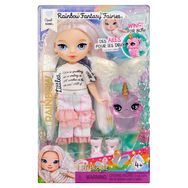 La poupée Rainbow High Littles Fantasy Fairies - Apple est une poupée de 14 cm avec une chevelure rouge vif, une tenue charmante, des ailes de fée interchangeables et un animal compagnon. Adaptée aux enfants de 4 ans et plus, elle stimule l'imagination, le jeu de rôle, les compétences sociales et la
