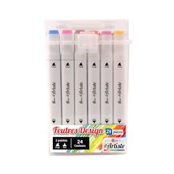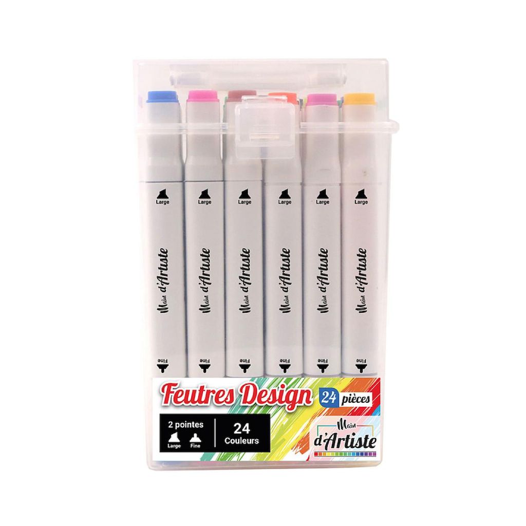 Cette boîte de 24 feutres marqueurs à l'alcool double pointe Main d'Artiste accompagne votre enfant pour sublimer tous ses dessins ! En plus de lui offrir un large panel de couleurs, chaque feutre possède deux pointes, large et fine, pour s'adapter aux besoins des dessins et coloriages de votre enfa