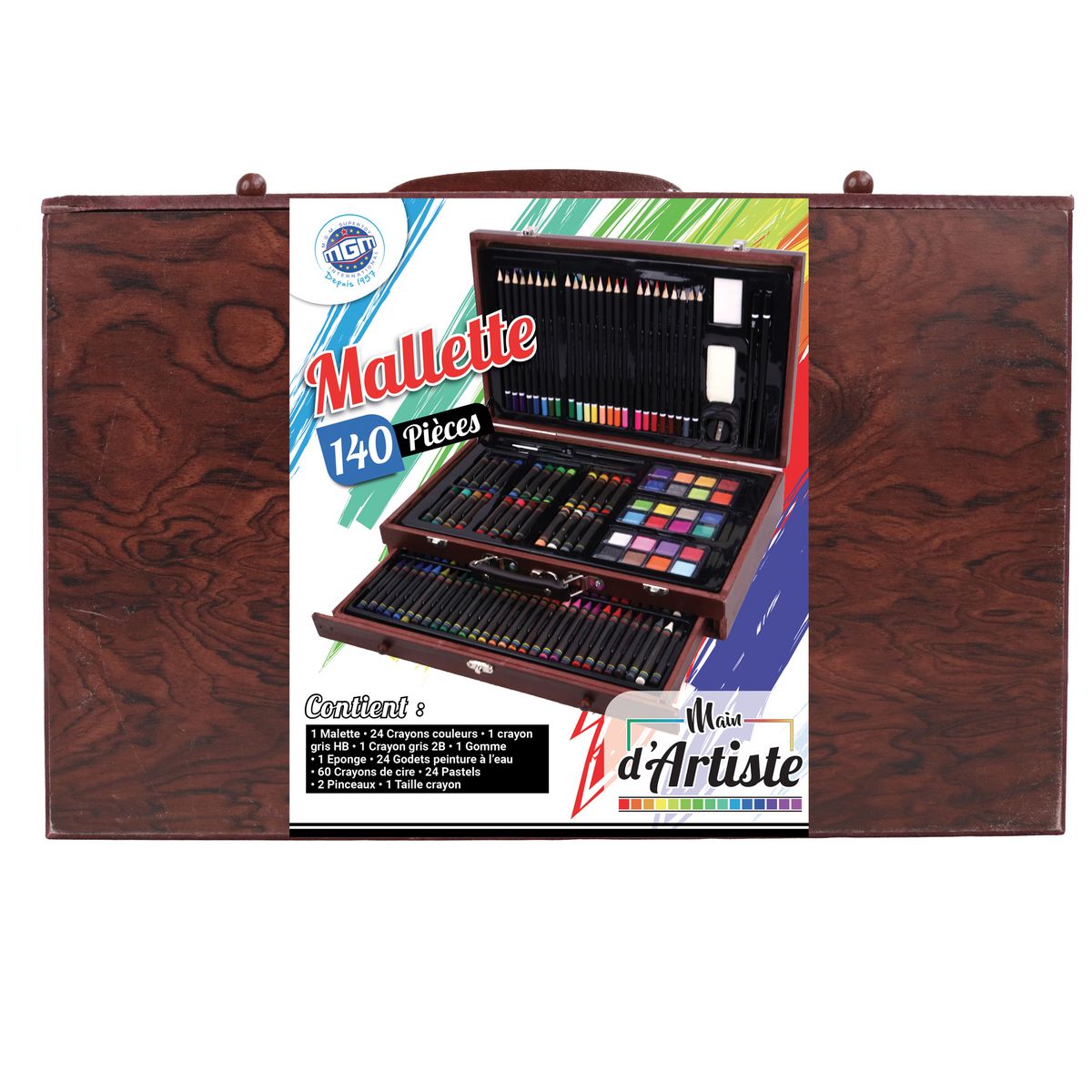 MALLETTE EN BOIS DESSIN PEINTURE AVEC TIROIR 140 PCS 38X23.5X7.5CM