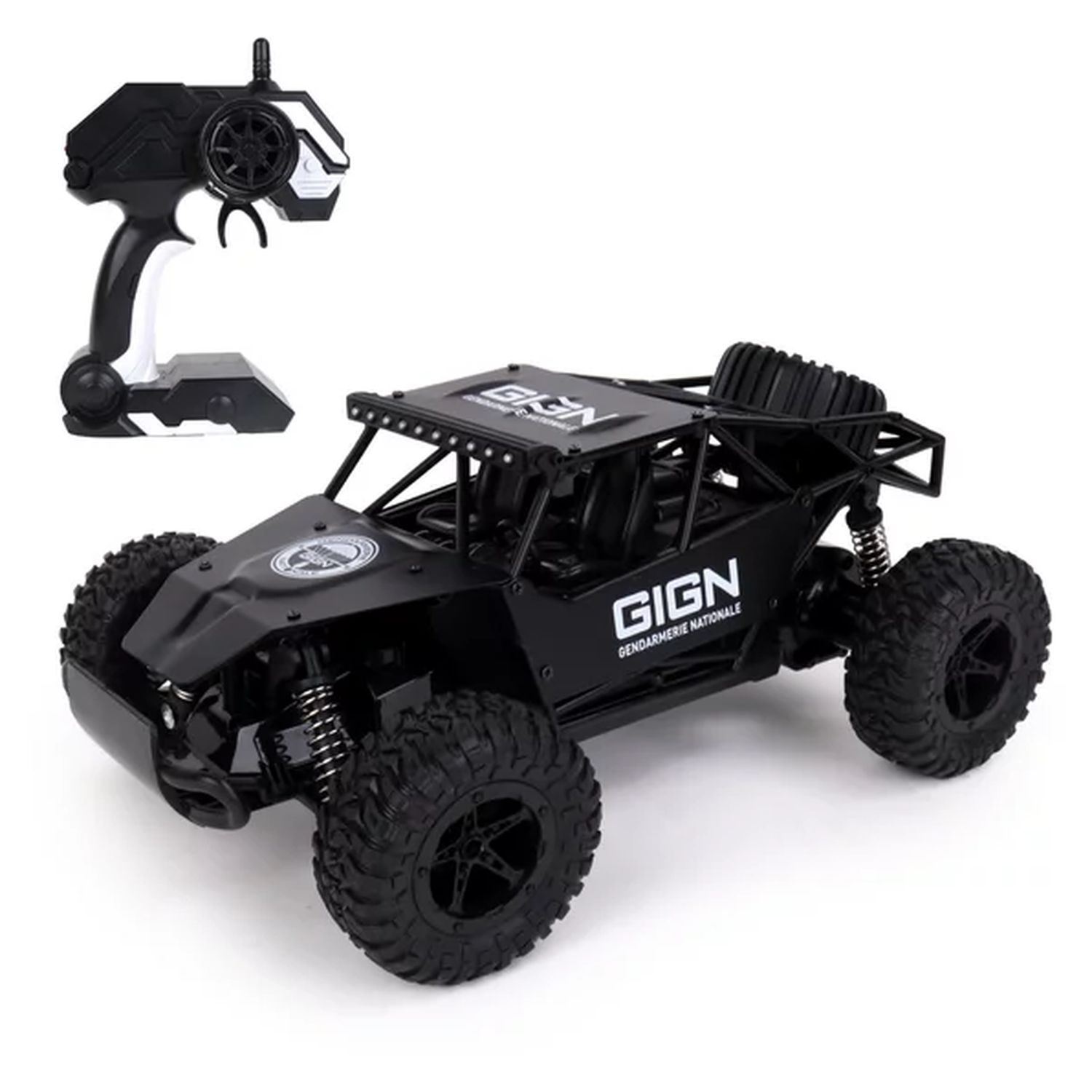 Iron GIGN 2.4 ghz coque métal prêt à rouler. La voiture est de 27 cm radiocommande toutes fonctions -2.4ghz - Coque métal GIGN et télécommande pistolet avec position droitier/gaucher. Le véhicule fonctionne avec une batterie li-ion 7.4v - 500mah incluse et rechargeable par câble usb inclus. La téléc
