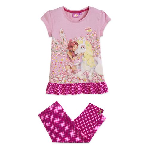 Les filles fans de Mia et Moi adoptent illico ce pyjashort ! Agréable à porter. 100% coton. Haut : grand imprimé sur le devant, col rond, manches courtes animées de petites fronces, base volantée. Corsaire : à pois, taille élastiquée. Ce pyjama short Mia et Moi est lavable en machine à 30°.