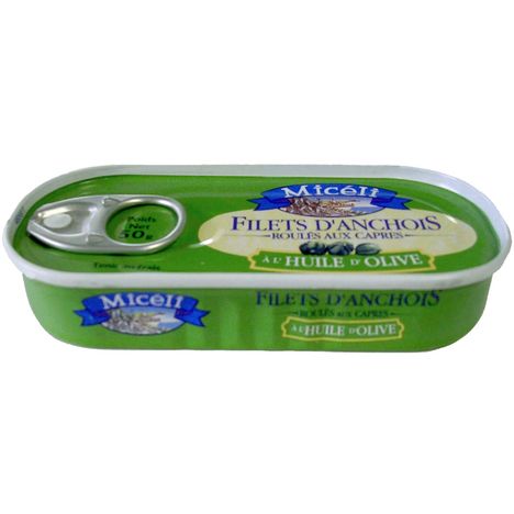 boite 1/15 filets anchois roulés sur capres huile d'olive 50g