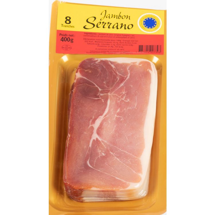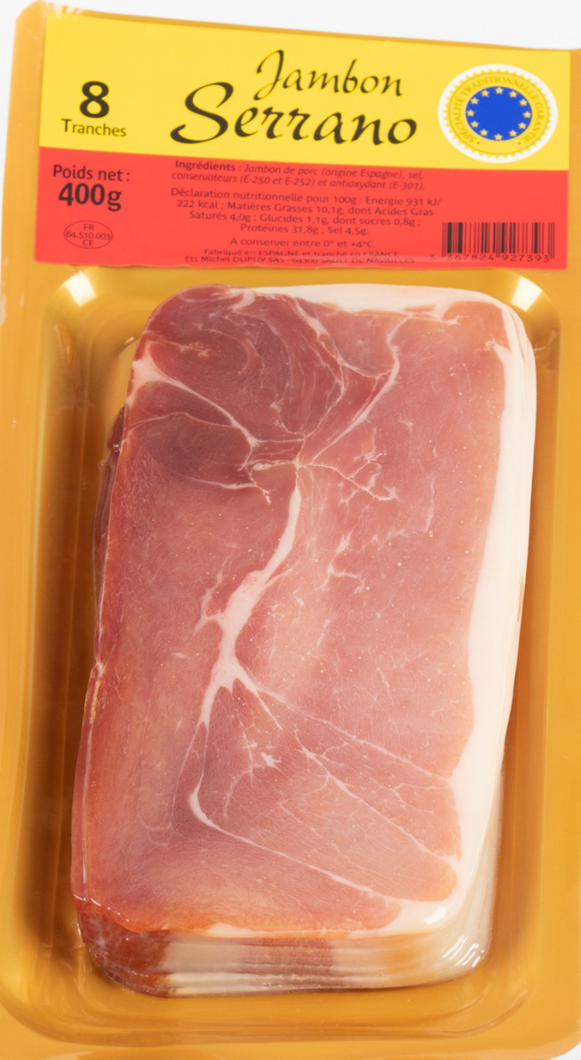 jambon de porc origine Espagne, sel, conservateur : salpêtre
