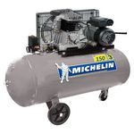 Compresseur Michelin 150 Litres 3CV - LIVRÉ AVEC HUILE PRÊT A L'EMPLOI ---- Capacité cuve : 150 Litres - Moteur : 3 HP / 230V - Pression maximum : 10 bars réglable - Groupe de compression : Courroie - Débit air aspiré : 350 L /min - Débit air restitué : 240 L / min à 7 bars - Qualité cylindre : 2 Cylindres fonte en ligne - Poids brut : 80 kg