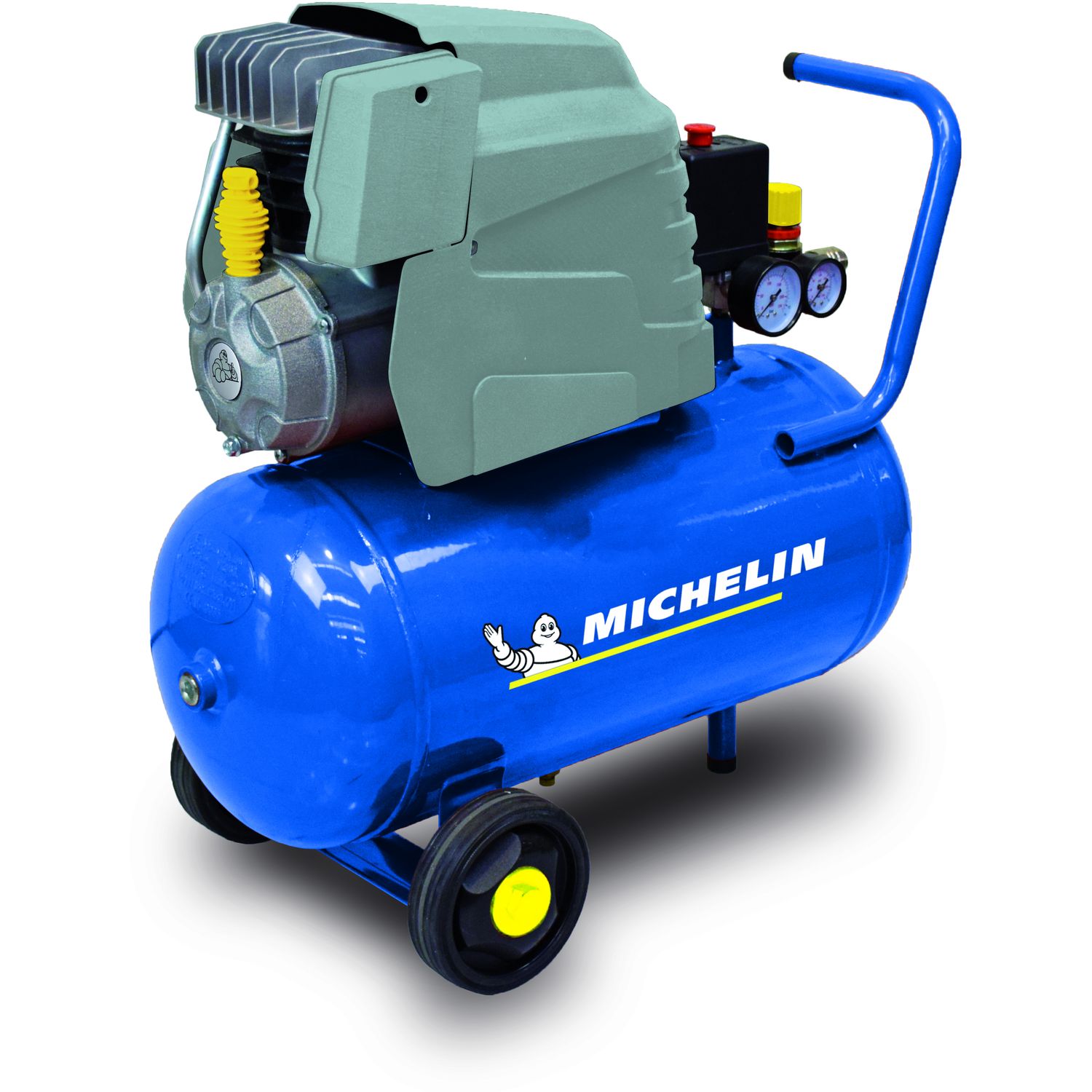 MICHELIN Compresseur 24Litres 2CV - Capacité cuve: 24L - Moteur 2HP/230V - Pression maximum: 8 bars réglable - Groupe de compression: Coaxial lubrifié - Livré avec huile prêt à l'emploi - Débit air aspiré: 170L/min - Débit d'air restitué à 7 bars: 120L/min - Qualité cylindre: Monocylindre en fonte - Poids 27kg - Dimensions: 58*61*31l cm - Norme CE SAV en France; Garantie 2 ans
