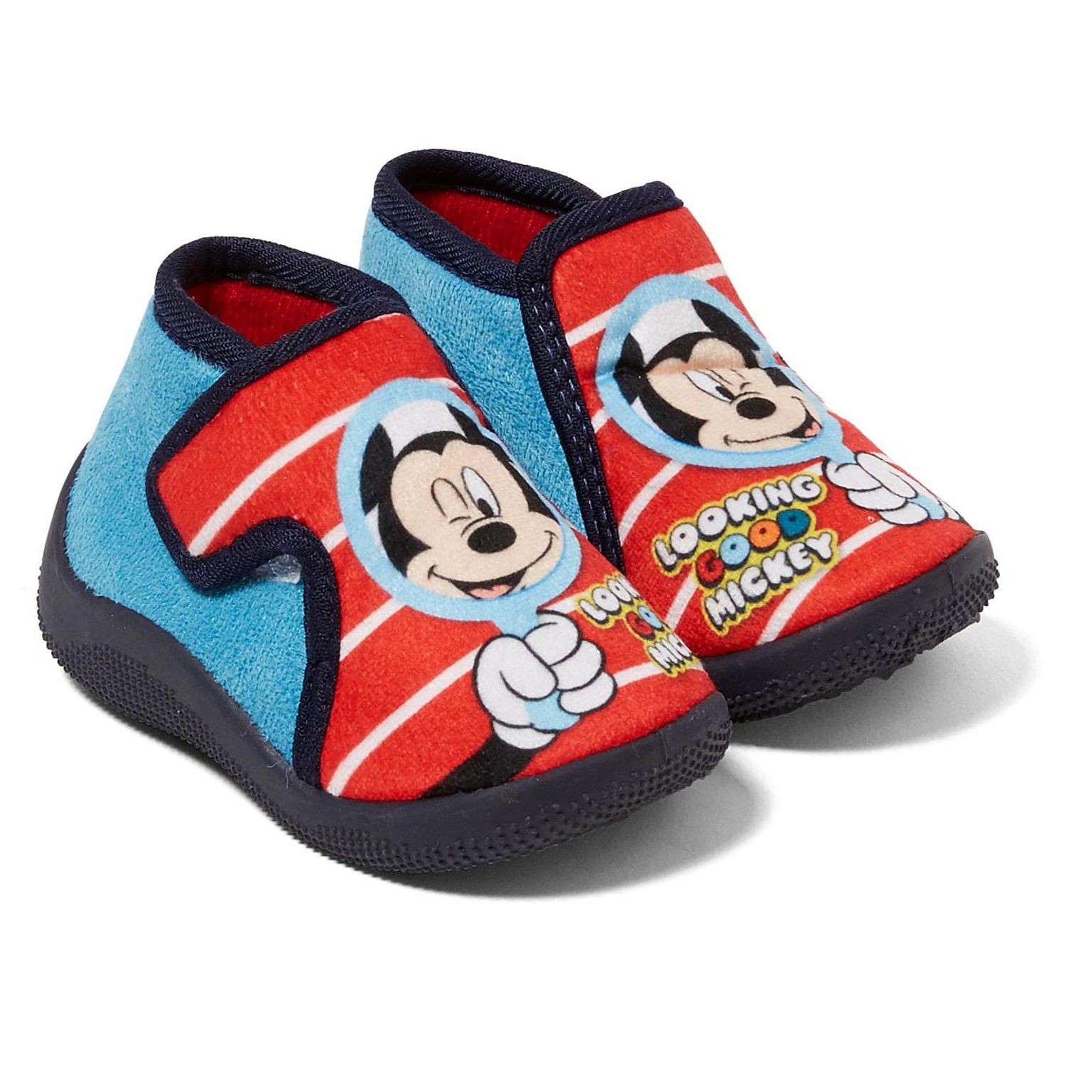 Indispensables pour marcher confortablement à la maison : les chaussons bébé Mickey. Dessus tout doux en velours, broderie fantaisie. Pratique : ouverture par une large patte scratchée. Intérieur doux et chaud. Semelles élastomère antidérapantes pour ces chaussons bébé garçon Disney.