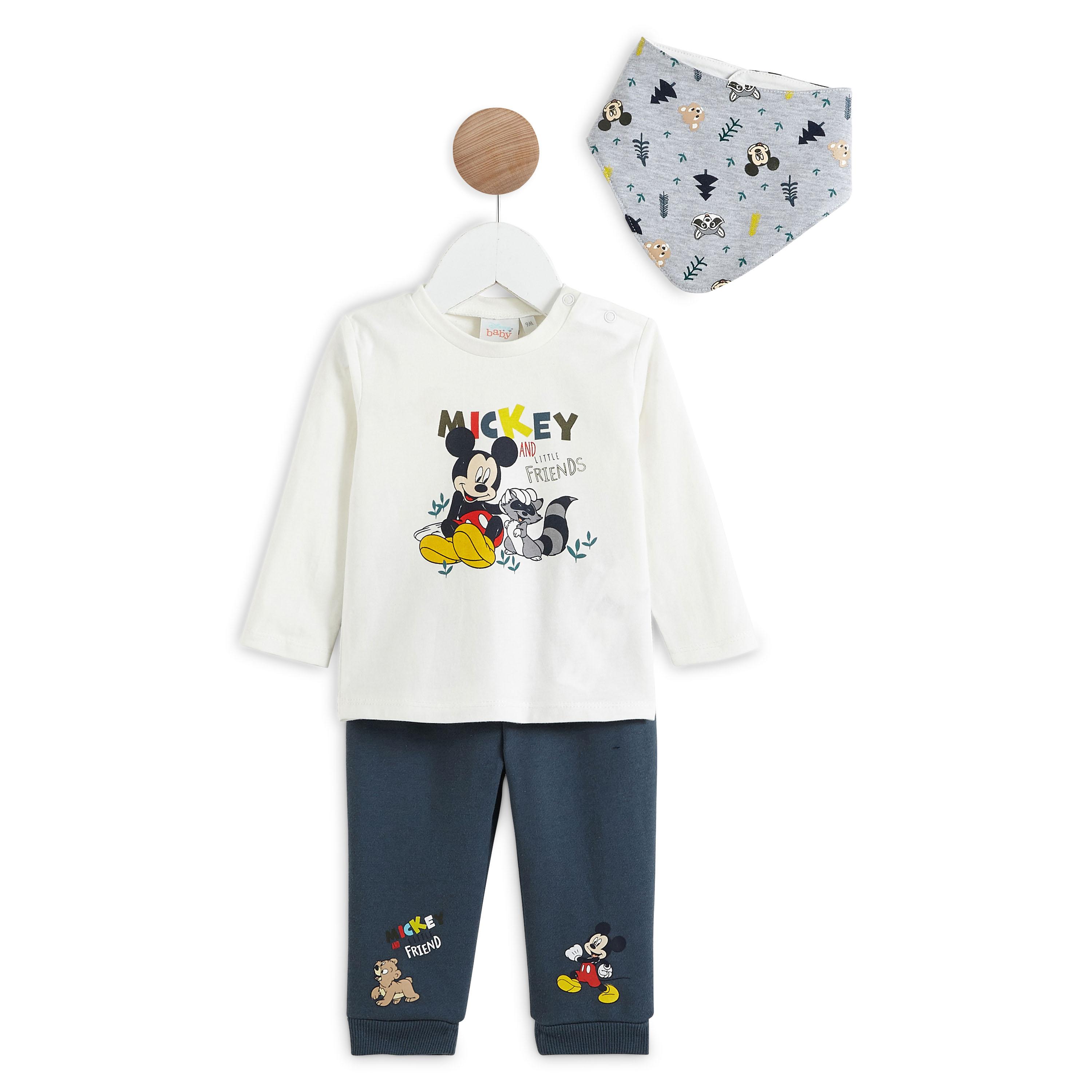 En savoir +On offre un look cool et décontracté à bébé avec cet ensemble en molleton ! Le haut s’anime d’un imprimé rigolo à l'effigie de Mickey et le pantalon chiné, avec motif au bas des jambes, possède une taille élastiquée pour un confort au top et des bas à revers cousus. Le sweat dispose de manches longues, d’un col rond et d'une finition bord-côte.