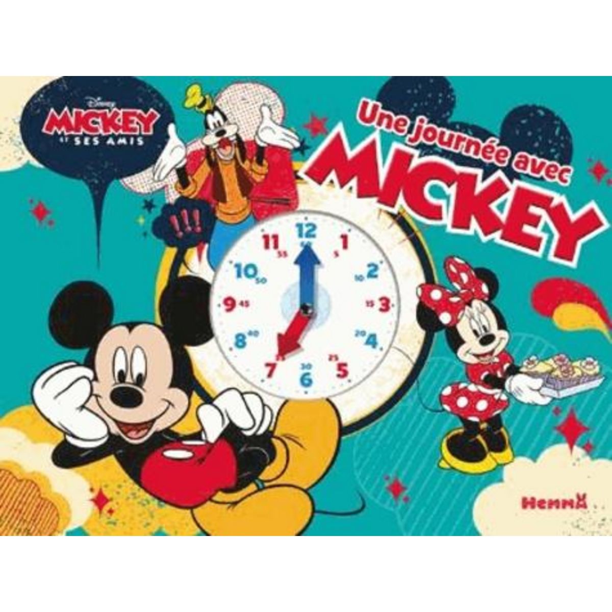 Découvre l'horloge et apprends à lire l'heure avec Mickey et ses amis. Suis-les pendant leur incroyable journée. tourne les aiguilles de l'horloge et amuse-toi avec les activités liées aux différents moments de la journée. Un livre ludique et interactif pour accompagner les enfants du lever au couch