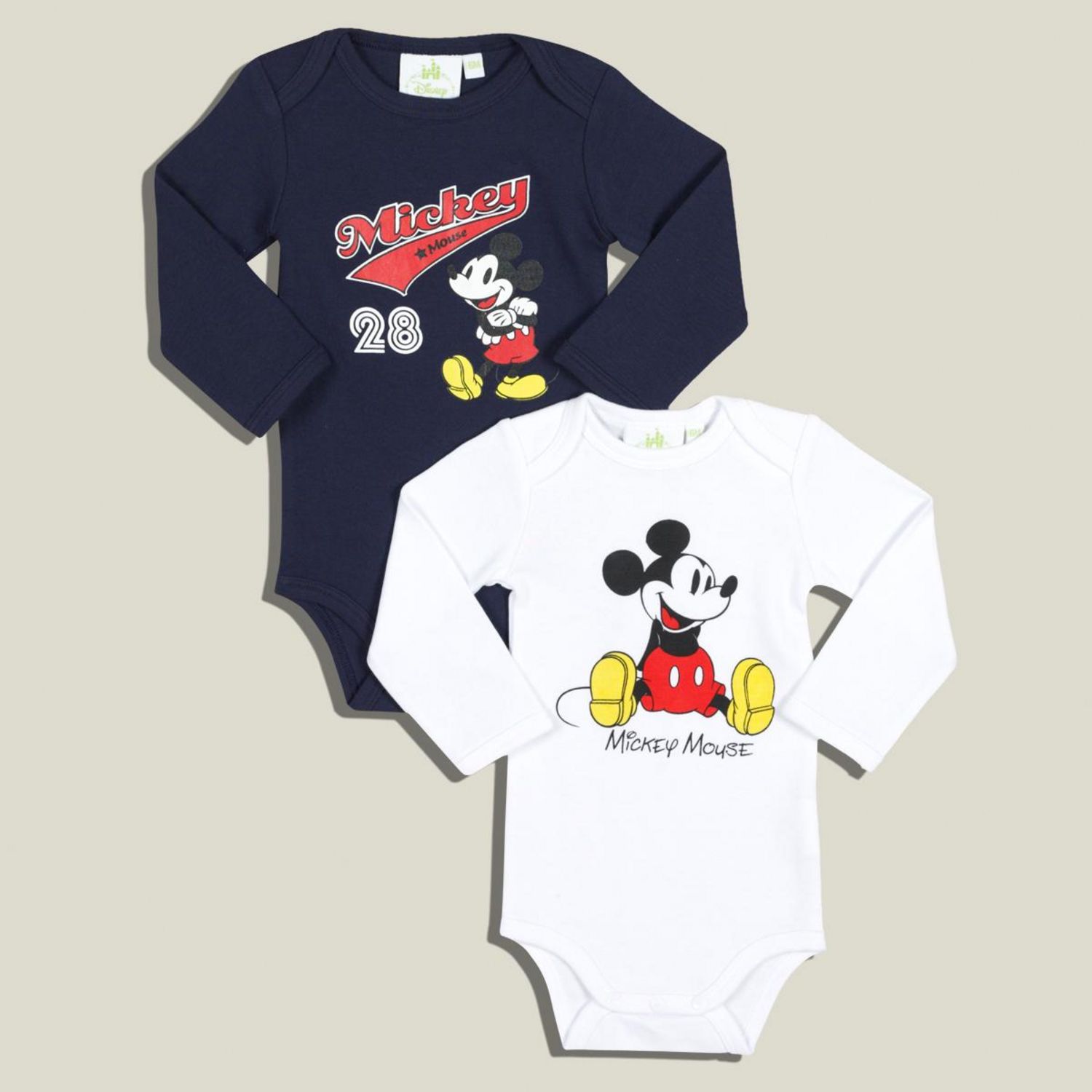 Des bodies doux et confortables à l'effigie de Mickey, on ne résiste pas ! 100% coton. Impression sur le devant. Emmanchures américaines pour faciliter le passage de tête, pressions à l'entrejambe, manches longues. Ce lot de 2 bodies Mickey est lavable en machine à 40°.