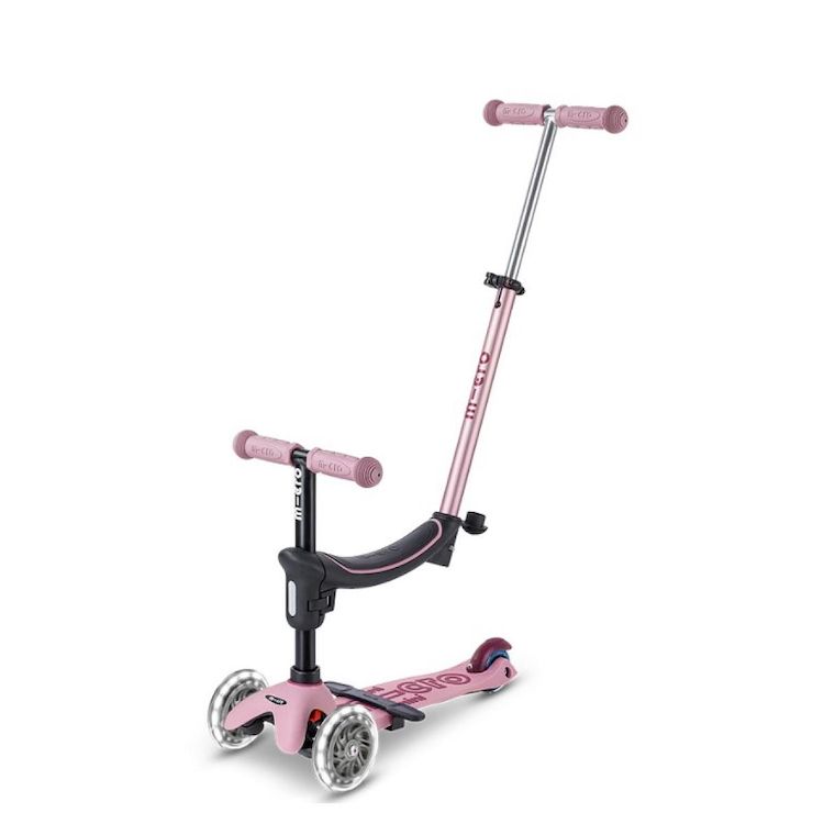 Contient : Micro Mini2Grow 2.0 LED Dusty Rose La trottinette Micro Mini2Grow Deluxe LED 2.0 est la toute dernière version de la célèbre gamme Mini2Grow et le compagnon idéal des premières années de votre enfant. Grâce à sa conception tout-en-un intelligente, elle accompagne votre tout-petit dès son