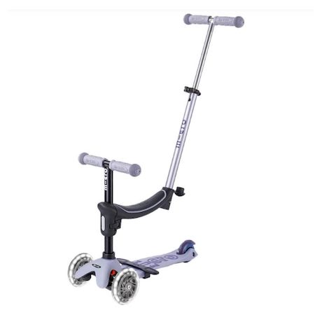 Contient : Micro Mini2Grow 2.0 LED Lavender Mist La trottinette Micro Mini2Grow Deluxe LED 2.0 est la toute dernière version de la célèbre gamme Mini2Grow et le compagnon idéal des premières années de votre enfant. Grâce à sa conception tout-en-un intelligente, elle accompagne votre tout-petit dès s