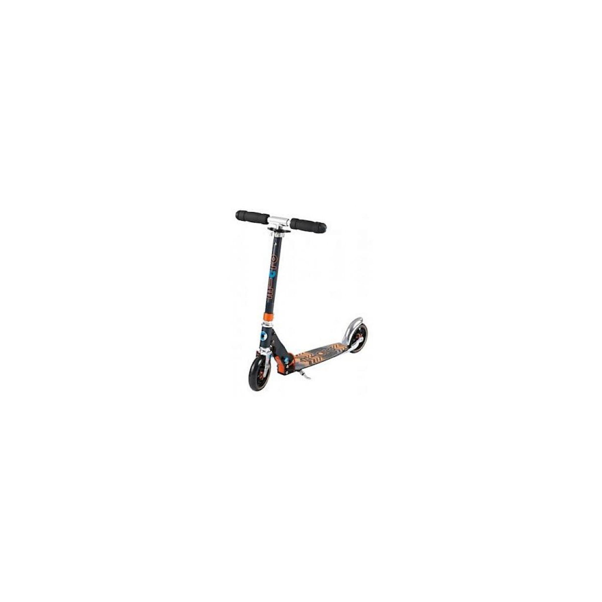 Nouveauté 2015 : avec ses roues qui absorbent les chocs, une planche large au revêtement super agrippant, la Micro Speed + a décidément de la personnalité ! Elle sera idéale pour des ados en recherche de sensations fortes. Les roues de la Micro Speed + sont plus grandes (145 mm) et dotées d'absorbeurs de chocs, ce qui permet une glisse confortable même en roulant vite sur un bitume de mauvaise qualité. Grâce à la planche extra large et à son revêtement agrippant spécial, on peut adopter une position très stable. La nouvelle couleur mint en fait la trottinette idéale pour l'été !. Couleur : Noir Orange. Poids : 3.750. Poids maximal : 100 kg. Taille des roues : 145 mm. Type de roues : Polyuréthane. Type de surface : Asphalte avec aspérités. Type de rangement : Pliable. Hauteur barre de direction : Ajustable