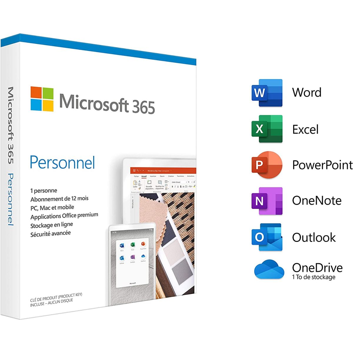 - Version Premium de la suite bureautique Office pour 1 personne : Word, Excel, PowerPoint, OneNote, Outlook, Access et Publisher (sur PC uniquement pour Access ou Publisher)