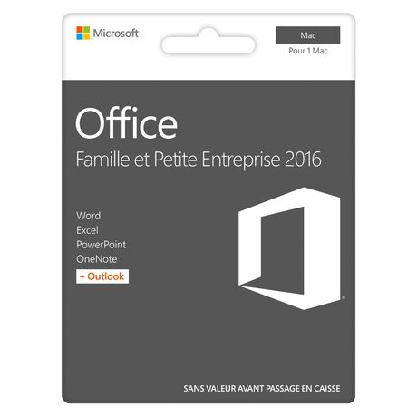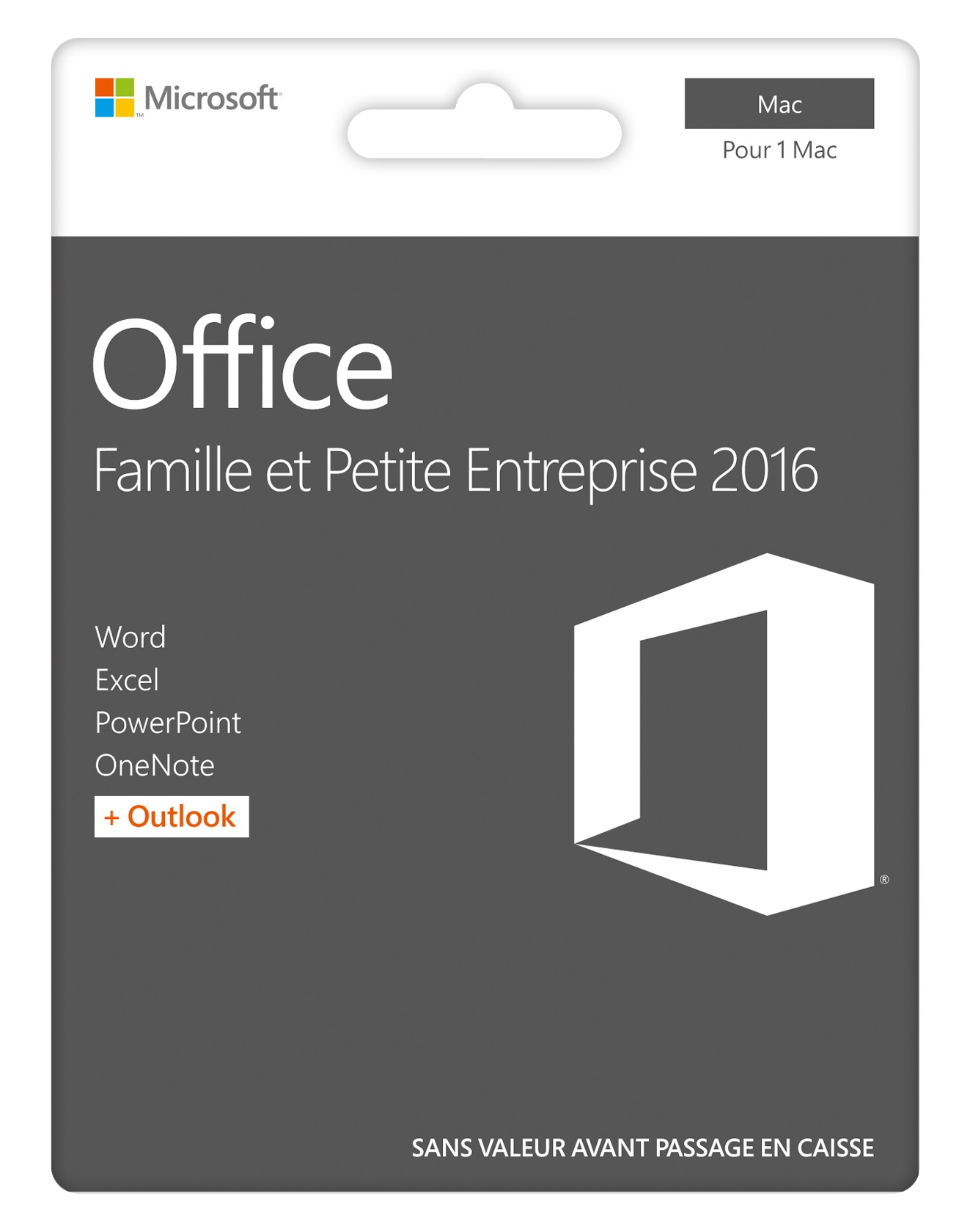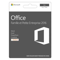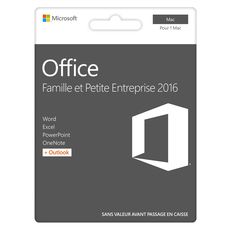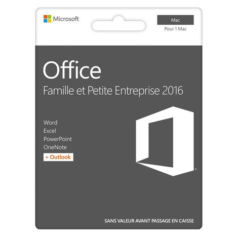 Le logiciel Office Famille et Entreprise 2016 pour Mac dispose des versions complètes et installées de Word, Excel, PowerPoint, Outlook et OneNote pour 1 Mac :