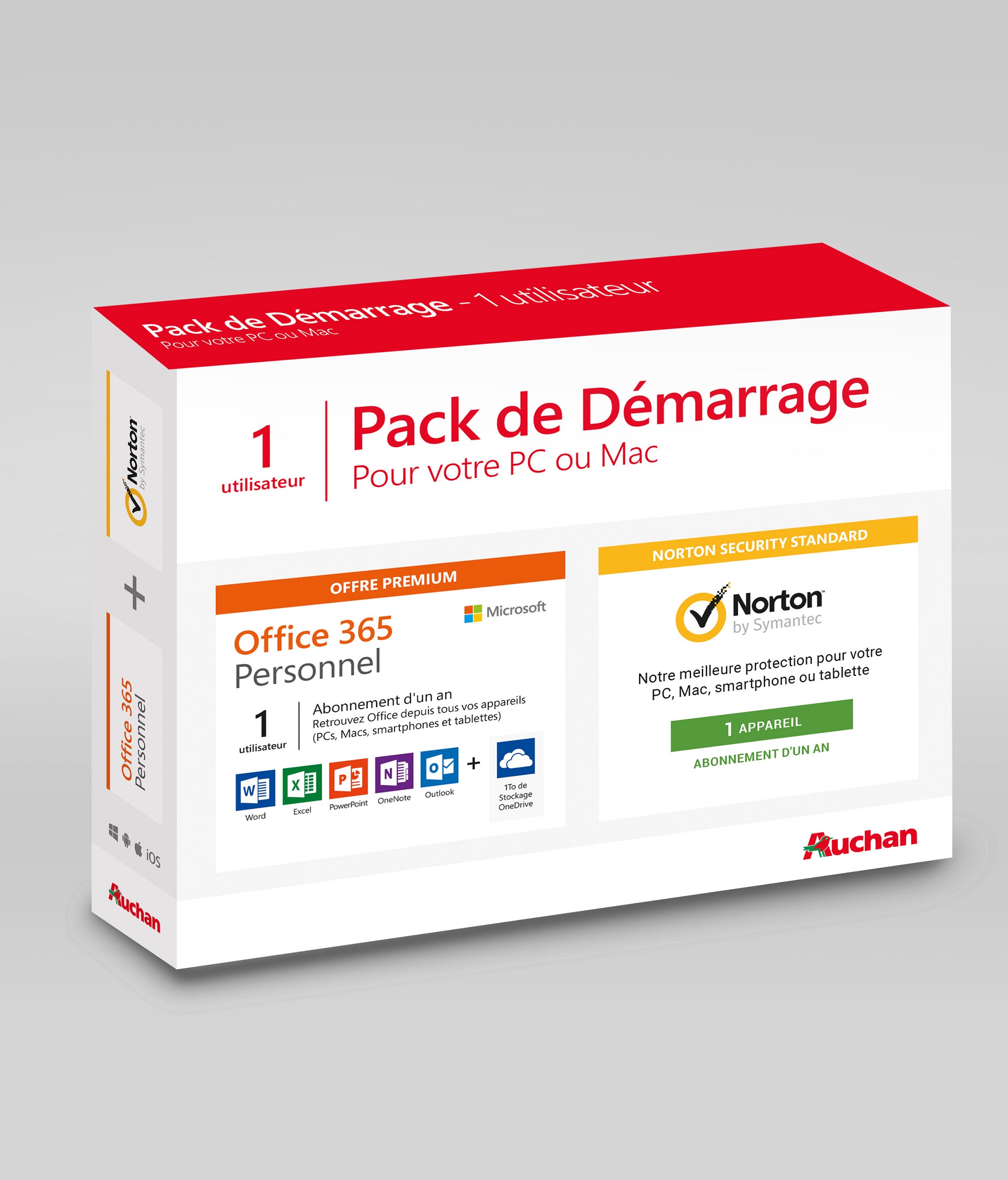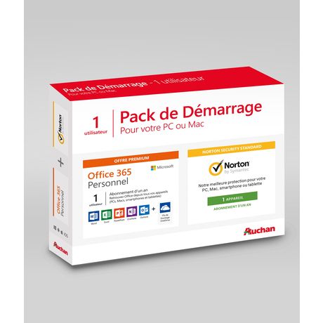 Logiciel bureautique Pack de Démarrage - Office 365 Personnel - Norton anti-virus - Pour PC ou Mac