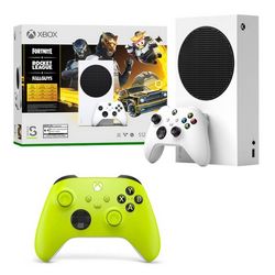 Pack Console Xbox Series S avec 3 Jeux Inclus : Fortnite + Rocket League + Fall Guys + Manette sans fil Jaune Electric Volt Xbox