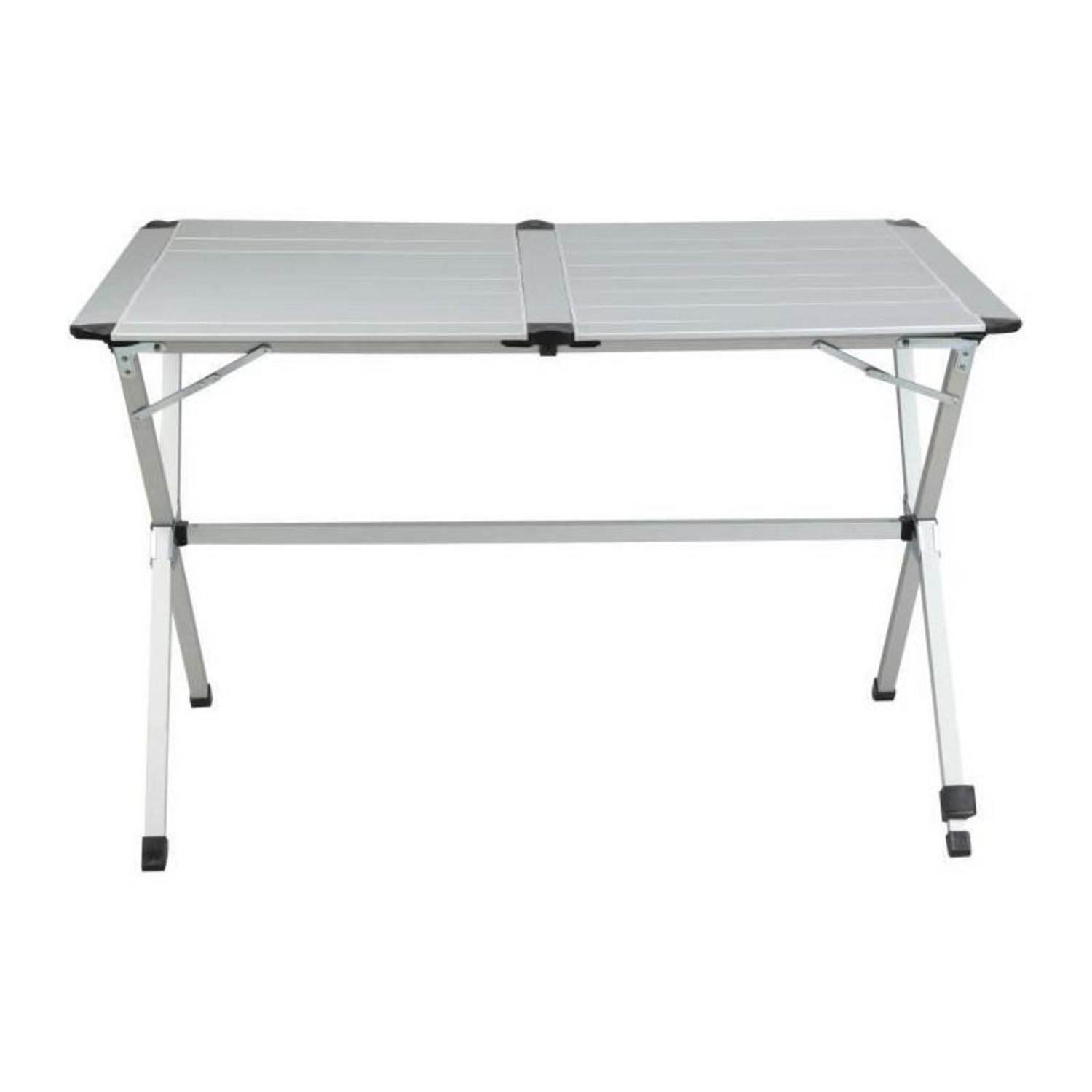 La table pliante MIDLAND Gap Less Grise est conçue pour offrir une surface de repas stable et pratique pour jusqu'à 4 personnes. Elle est équipée d'un châssis pliant en aluminium robuste et de lamelles en aluminium enroulables, assurant une surface lisse et uniforme grâce au système de crémaillères Gap Less . Ce design permet un maintien parfait des lamelles, offrant ainsi une surface plane idéale pour les repas en plein air.