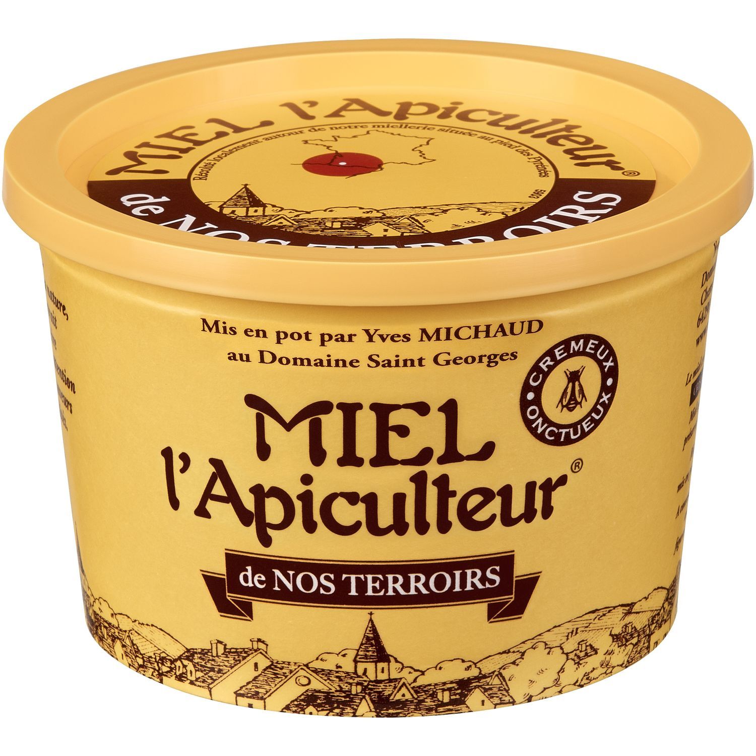 MIEL DE NOS TERROIRS, récolte locale PC 250g Succombez à la recette unique, à la fois fruitée et fleurie, et aux notes noisette de ce miel crémeux MIEL l'Apiculteur®.