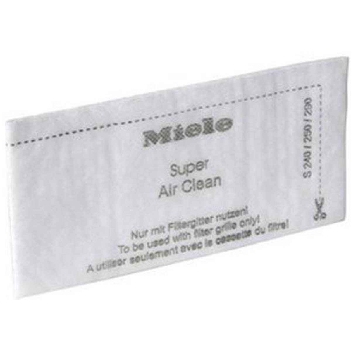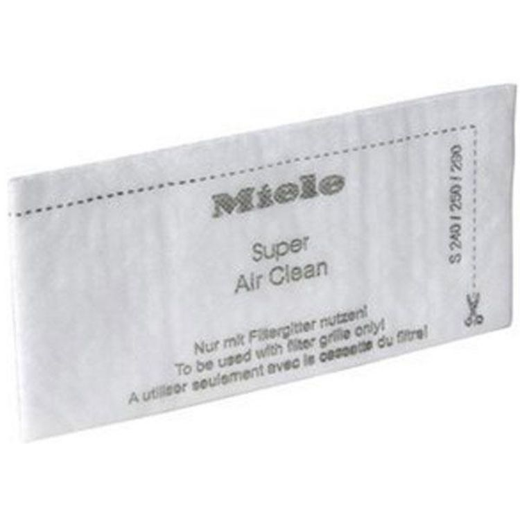 Miele SUPER AIR CLEANER Les filtres d'évacuation Miele permettent d'avoir un air plus pur. Le filtre Super Air Clean est multicouches et retient les microparticules en suspension dans l'air. L'air rejeté est plus pur que l'air ambiant. Il est recommandé de le changer environ tous les 4 sacs. - Ce f