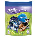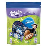 Chocolat au lait du pays alpin fourré crème confiseur (38 %) au lait et éclats (3,5 %) de biscuit