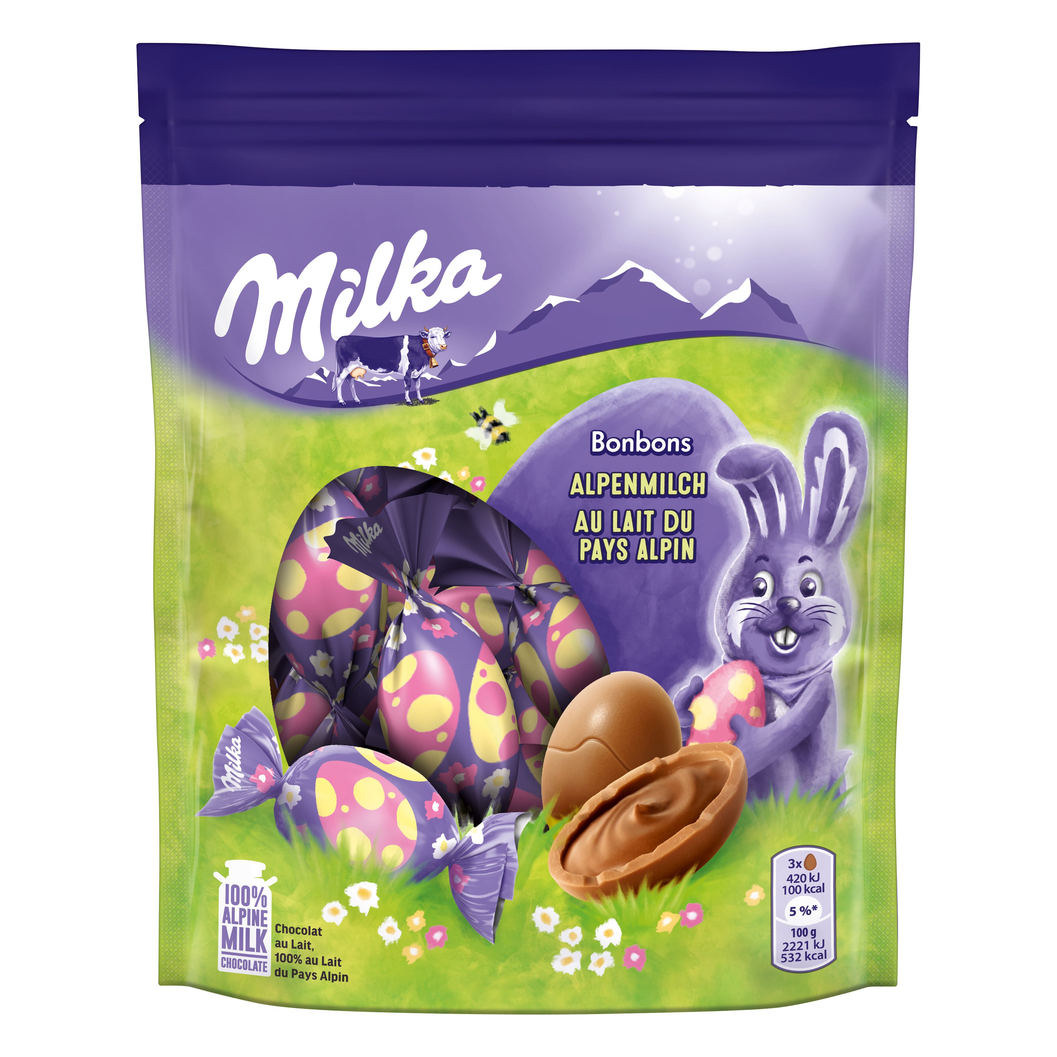 Au chocolat au lait du pays Alpin Milka.
