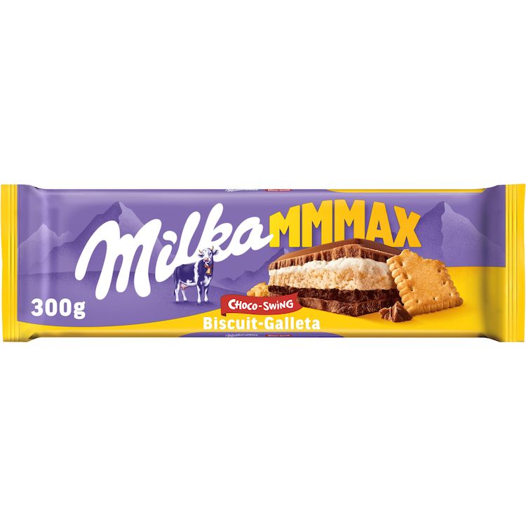 Découvrez Milka Mmmax Choco Swing ! Une combinaison gourmande qui séduira petits et grands : le croustillant d'un biscuit et le fondant d'une crème confiseur au cacao et lait associés à la tendresse du chocolat au lait Milka. Depuis la toute première tablette Milka produite jusqu'à la dernière sortie de nos usines, Milka doit son goût intemporel au parfait mélange d'ingrédients de qualité. Nous utilisons 100 % de lait alpin et du cacao durable grâce à notre programme Cocoa Life. Vous pouvez ressentir tout le soin apporté à cette combinaison chaque fois qu'un carré de Milka fond sur votre langue.