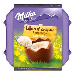 Chocolat au lait du pays alpin fourré crème confiseur (47%) au lait.