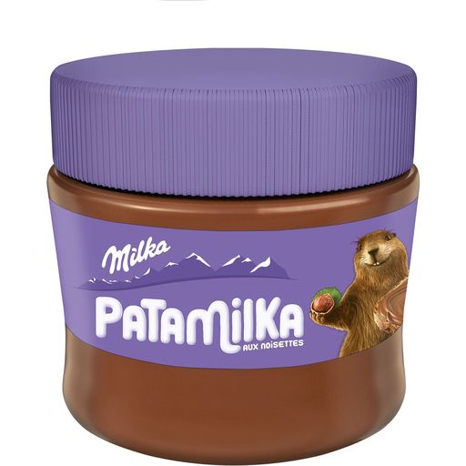 Pâte à tartiner aux noisettes et au cacao, saveur noisette. Milka lance Patamilka ! Une délicieuse Pâte à tartiner au bon goût noisette et la texture onctueuse, pour de tendres petits déjeuners à partager en famille ! Sans huile de palme. Existe aussi en format 600g, selon disponibilités.
