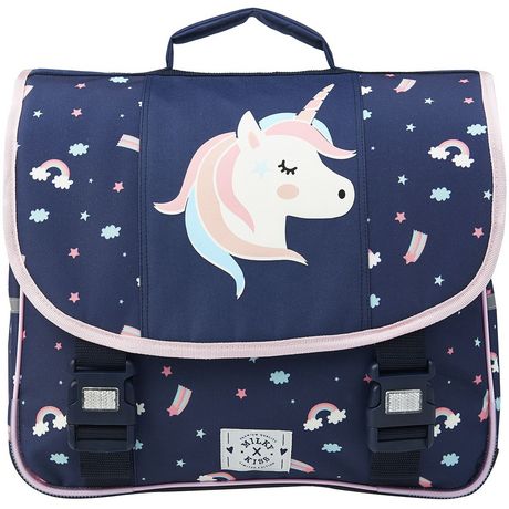 Cartable 38 cm CP/CE1/CE2 bleu imprimé LICORNE