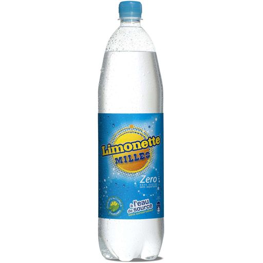 Limonade à l'eau de source avec édulcorants Limonette Zéro, une limonade avec Zéro sucres , Zéro aspartame. Soda à l'eau de source et extraits naturels d'agrumes sans conservateur.