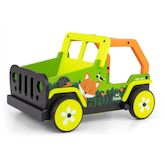 Un trotteur-pousseur pour enfants inspiré des légendaires véhicules tout-terrain. Fabriqué en bois de haute qualité et en matériaux respectueux de l'environnement, il est doté d'enjoliveurs en TPR souple, flexible et résistant, qui permettent une utilisation sur toutes les surfaces sans les abîmer n