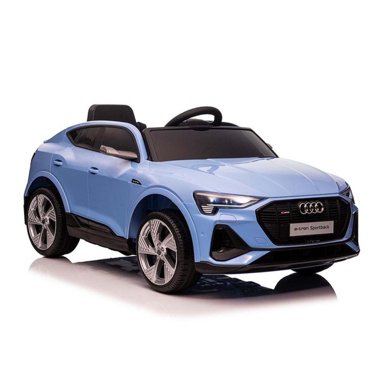 Tout comme l'original, ce véhicule électrique allie design sportif et caractère altique. Conçu avec le plus grand soin dans les moindres détails, il est fabriqué à partir de matériaux de la plus haute qualité, garantissant durabilité et sécurité. Prenez le volant élégant de l'Audi E-Tron Sportback 4x4 et sentez-vous comme un véritable pilote de voiture de sport. Que ce soit dans l'Audi E-Tron Sportback 4x4 d'origine ou dans notre véhicule électrique, ils sont propulsés par quatre moteurs électriques de 25 W délivrant une puissance impressionnante. Trois niveaux de vitesse permettent d'adapter la vitesse aux capacités de l'enfant. Sa silhouette élégante suscite l'admiration. Un grand siège confortable et profilé, avec ceinture de sécurité, offre un confort optimal à l'enfant. La télécommande permet de verrouiller la vitesse (P), de sélectionner l'un des trois niveaux de vitesse (S), de tourner et de reculer. Transmission 2 ou 4 roues motrices variable par interrupteur. Produit original sous licence Audi Nombre de places 1 3 vitesses avant et 1 vitesse arrière disponibles via la télécommande Fonction de rotation disponible via la télécommande Phares et feux arrière à LED lumineux Sur le côté gauche du véhicule se trouve une prise de charge située sous un volet Horloges de cockpit éclairées à LED Fonctions musicales sur le cockpit et prise USB, lecteur MP3, USB et carte TF, lecture de musique, lecture de contes de fées, volume +/- Interrupteur marche avant et marche arrière Transmission variable à 2 ou 4 roues motrices Pédale d'accélérateur Volant élégant axes de roues en métal Vitres avant teintées Roues avant directrices 2 portes ouvertes Roues en mousse EVA avec bande de roulement et jantes sport Charge admissible 25 kg