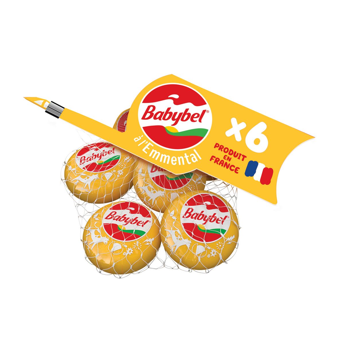 Mini Babybel à l'Emmental, le petit fromage fait en France au bon goût d'Emmental pour encore plus de saveur. Avec son format portion, il est pratique pour le goûter des enfants et l'encas des adultes, et toujours amusant avec sa légendaire coque en cire.