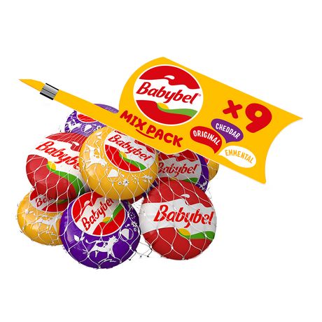 Mini Babybel Mix, 9 portions de fromages faites en France pour varier les plaisirs : 3 Mini Babybel Rouge, 3 Mini Babybel à l'Emmental et 3 Mini Babybel au Cheddar. Ces différentes saveurs raviront les petits et les grands au goûter après l'école ou encas avant le dîner.