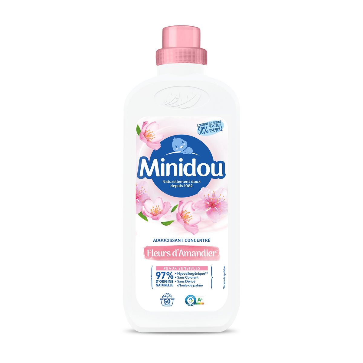 L’assouplissant Minidou Fleurs d'Amandier enveloppe votre linge d’un délicat parfum frais et réconfortant et lui assure un maximum de douceur. Sa formule hypoallergénique à 97% d’ingrédients d’origine naturelle est particulièrement respectueuse des peaux sensibles à tendance allergique. Minidou, le plus doux des adous.