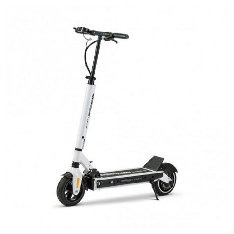 Une trottinette de 20,6 kg pliable avec des freins tambour arrière et frein éléctrique.