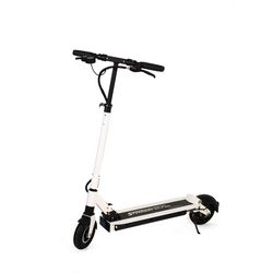 Une trottinette de 16,37 kg pliable avec des freins tambour arrière et frein éléctrique.