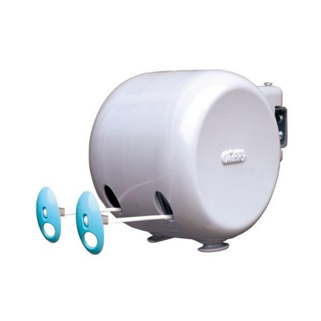 Minky VT21200100 Le séchoir à linge VT21200100 de Minky est un séchoir enrouleur ingénieux qui permet de ne prendre que très peu de place lorsqu'il n'est pas utilisé.Il possède deux fils d'étendage d'une longueur de 15 mètres chacun.Suivant l'arrivage, la couleur du sechoir VT21200100 de MINKY peut-