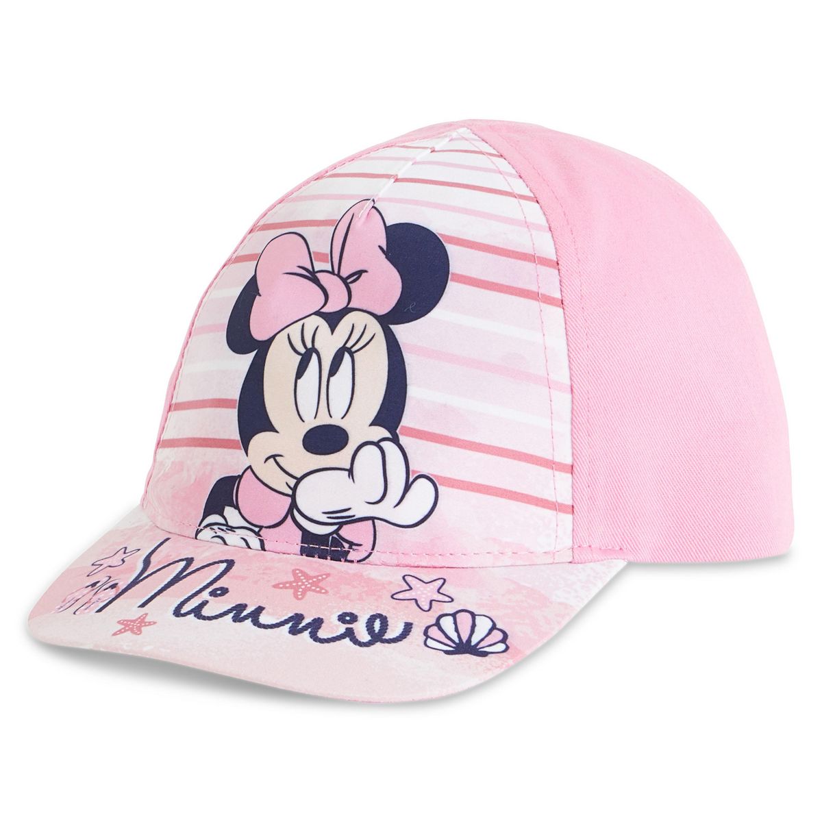 L'accessoire préféré de toutes les fans de Minnie Mouse ; c’est cette casquette à son effigie ! On craque pour l'imprimé girly avec des rayures et des petites étoiles de mer. Cette casquette possède une languette réglable à l'arrière pour s'adapter à tous les tours de tête.