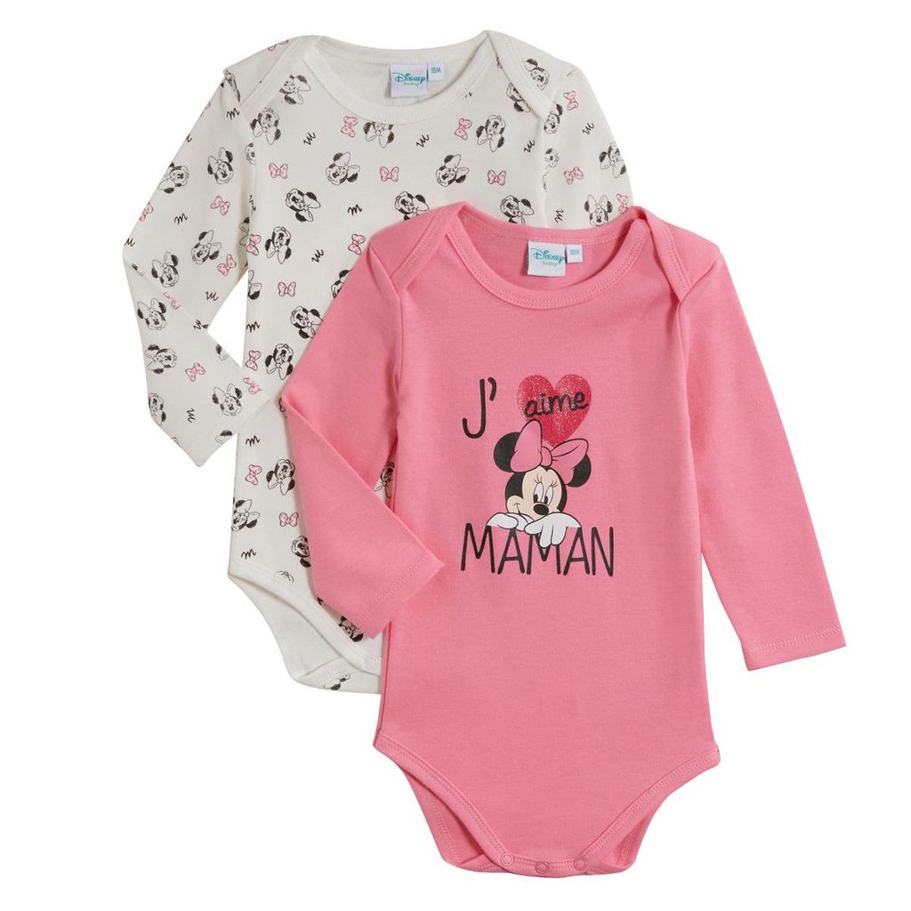 En savoir +Les mamans craquent pour ce lot de 2 bodies bébé Minnie, 100% coton. On note les emmanchures américaines facilitant le passage de tête et l'ouverture pressionnée à la base. Ce lot 2 bodies Disney associe un body imprimé et un body avec un décor imprimé et légères paillettes sur le devant.