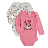 Les mamans craquent pour ce lot de 2 bodies bébé Minnie, 100% coton. On note les emmanchures américaines facilitant le passage de tête et l'ouverture pressionnée à la base. Ce lot 2 bodies Disney associe un body imprimé et un body avec un décor imprimé et légères paillettes sur le devant.