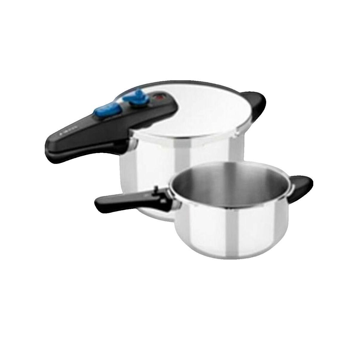 Découvrez cet ensemble d'autocuiseurs Monix en acier inoxydable au design moderne. Il comprend deux casseroles pression de 4 litres et 6 litres, adaptées à tous types de cuisines. Leur système de sécurité à triple niveau garantit une cuisson sûre ainsi qu'un fond diffusant pour une cuisson rapide. C