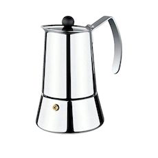 Découvrez la cafetière italienne Eterna de Monix, conçue pour une préparation style moka. Fabriquée en acier inoxydable de haute qualité, elle assure une répartition uniforme de la chaleur et une excellente durabilité. Sa finition argentée brillante s'harmonise parfaitement avec un décor de cuisine