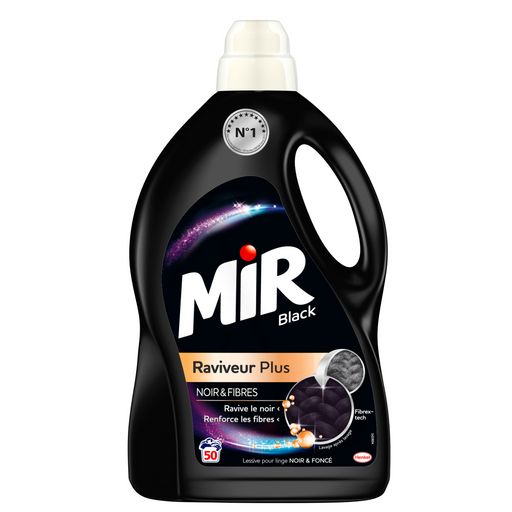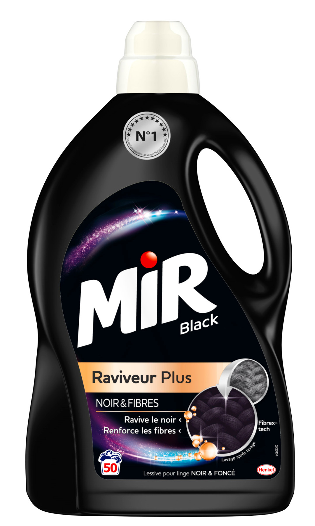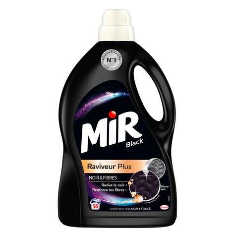 Mir Black Ravive & Répare 3L Mir Black Ravive & Répare, l’expert de votre linge noir et foncé. Sa nouvelle formule améliorée ravive le noir de vos vêtements tout en lissant et renforçant les fibres pour que vos vêtements noirs restent beaux comme neufs ! Produit dangereux. Respecter les précautions d'emploi.