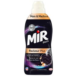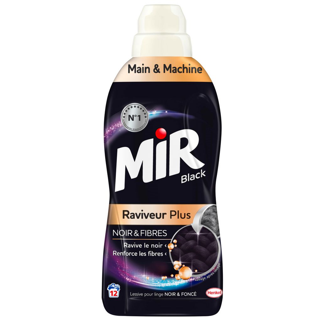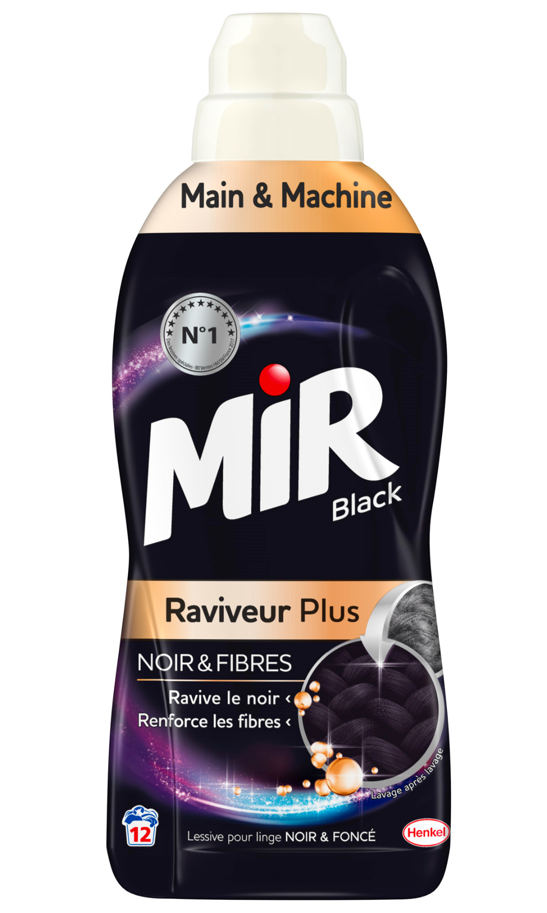 Mir Black Ravive & Répare, l’expert de votre linge noir et foncé. Sa nouvelle formule améliorée ravive le noir de vos vêtements tout en lissant et renforçant les fibres pour que vos vêtements noirs restent beaux comme neufs ! Produit dangereux. Respecter les précautions d'emploi. Mir Black Ravive & Répare 750ml