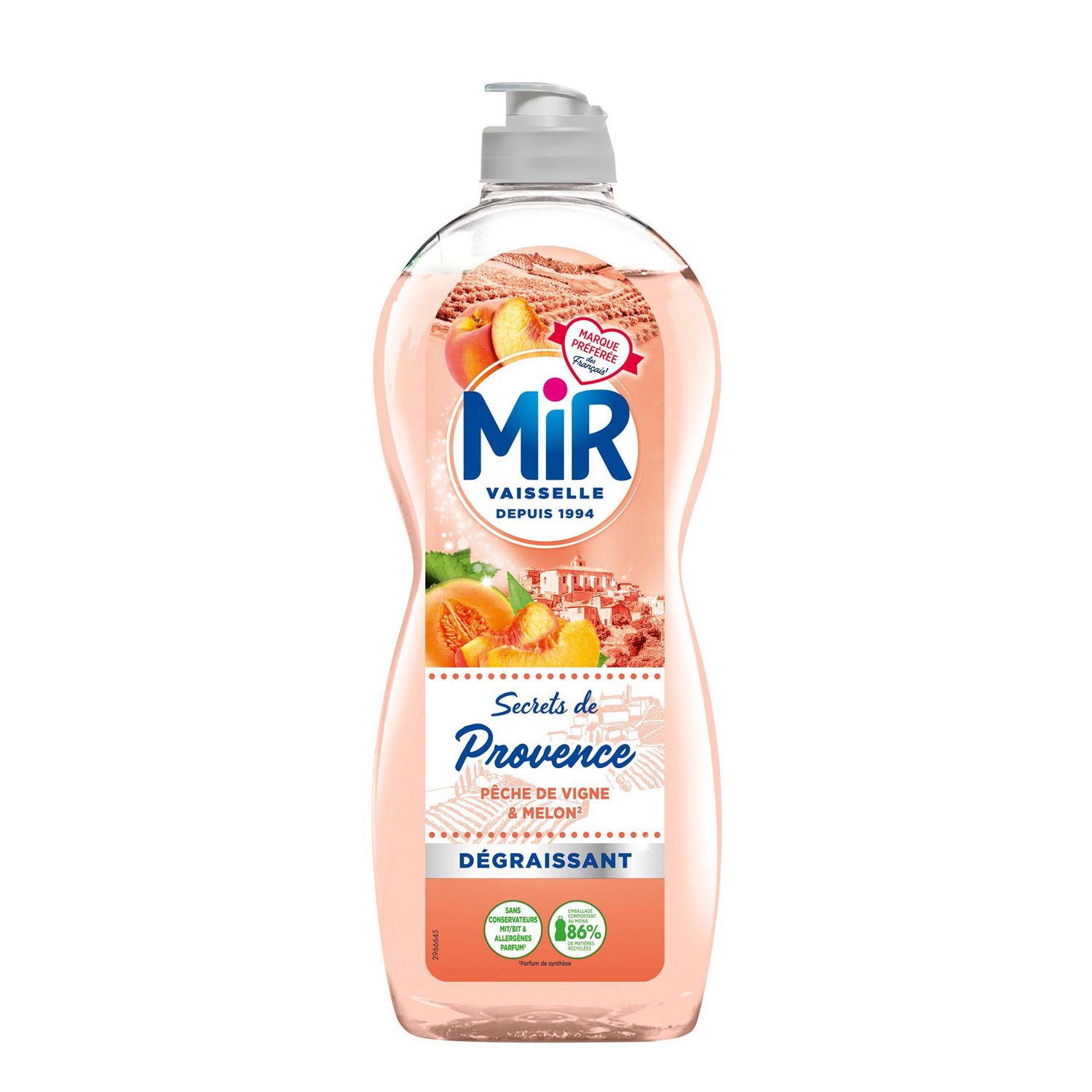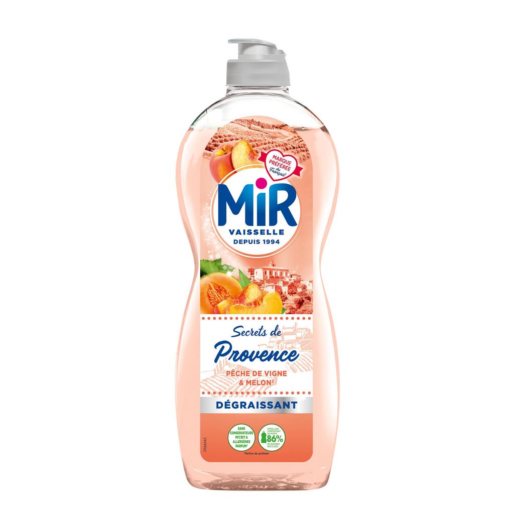 Un agréable parfum de Pêche de Vigne & Melon** alliée à une formule super dégraissante Parfum de Pêche de Vigne & Melon** : évasion en Provence garantie ! Emballage comportant au moins 86% de matières recyclées Super dégraissant