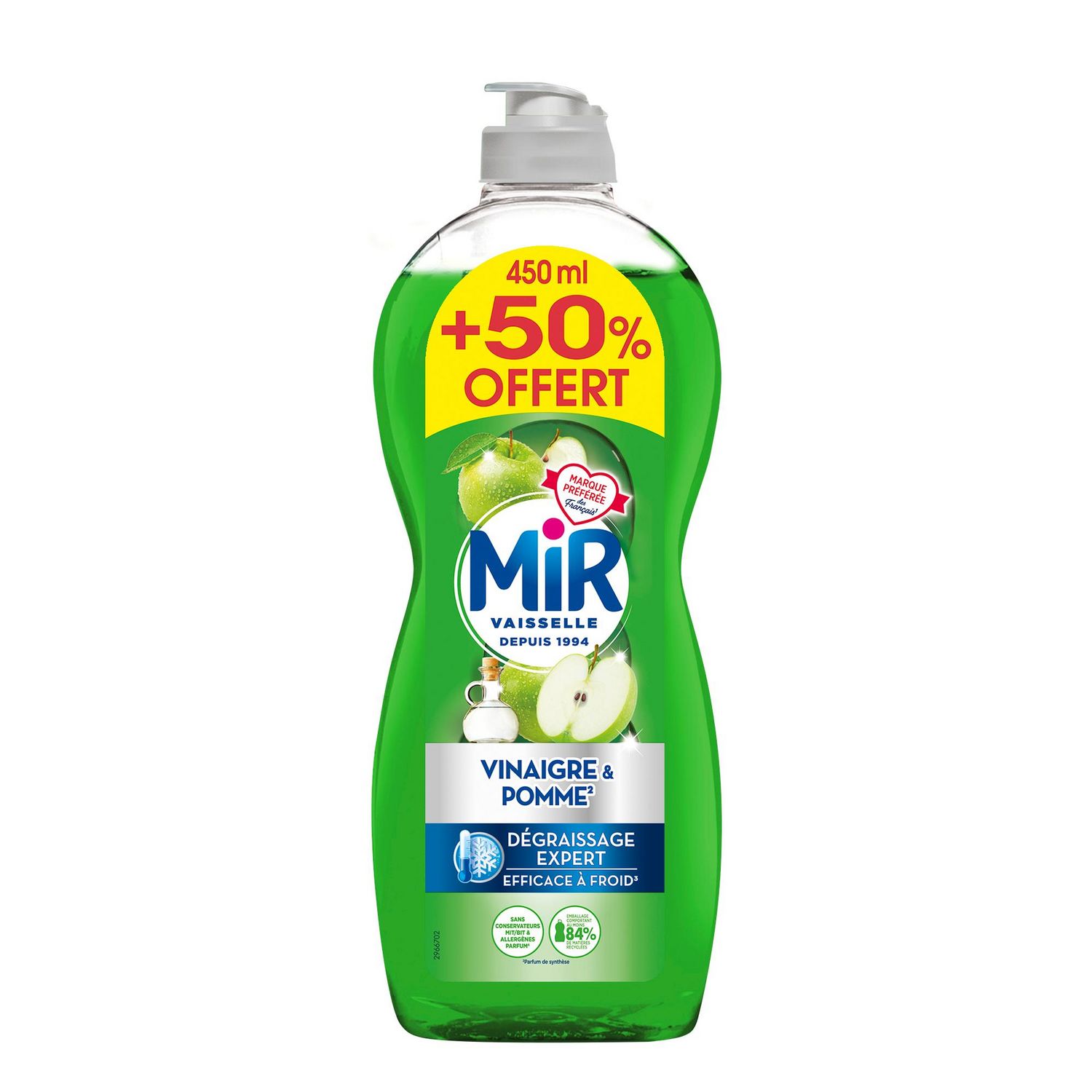 Mir Vaisselle Vinaigre & Pomme 450ml+50% offert